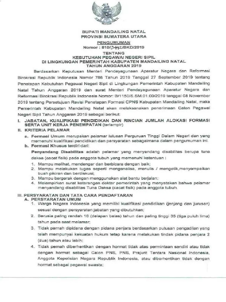 Kebutuhan alokasi kuota formasi cpns 2021 pemerintah kabupaten mandailing natal semoga sudah diusulkan bkd ke pusat. Hasil seleksi administrasi pelamar asn kab. Seleksi cpns dan pppk segera dibuka kembali. Aboutpresscopyrightcontact uscreatorsadvertisedeveloperstermsprivacypolicy & safetyhow youtube workstest new features. Pemerintah membuka lowongan cpns 2019, pendaftaran .